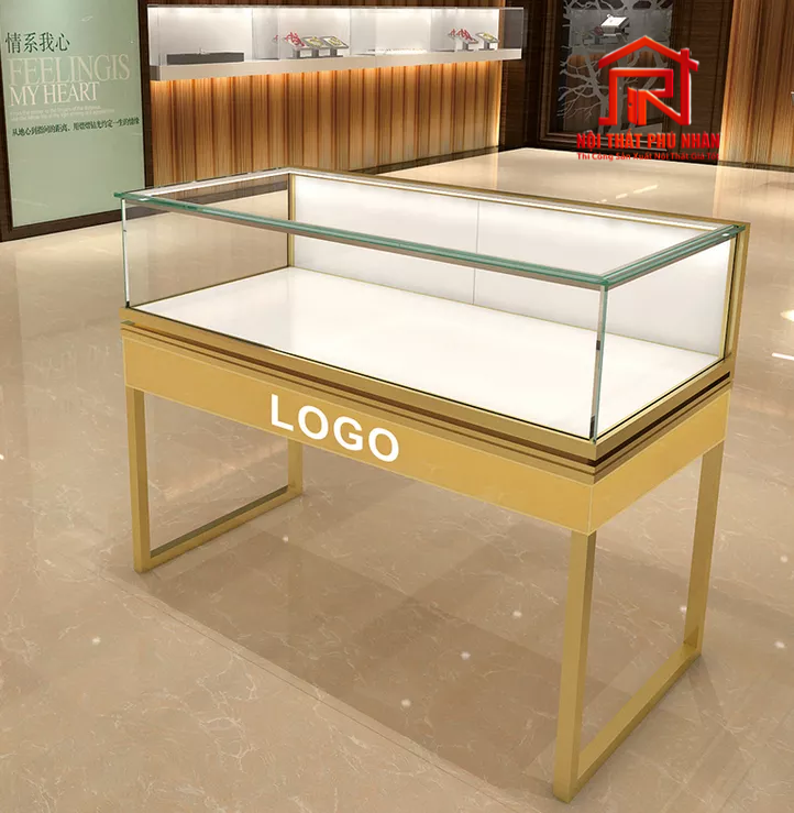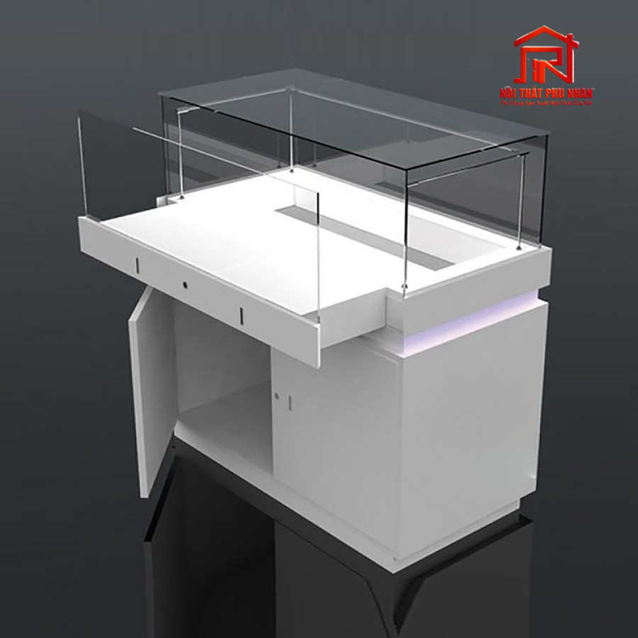 | Tủ thấp trưng bày nhẫn/vòng | 1000 x 500 x 900 mm | MDF sơn PU, kính cường lực 10mm, đèn LED 2 bên | 3.000.000đ |