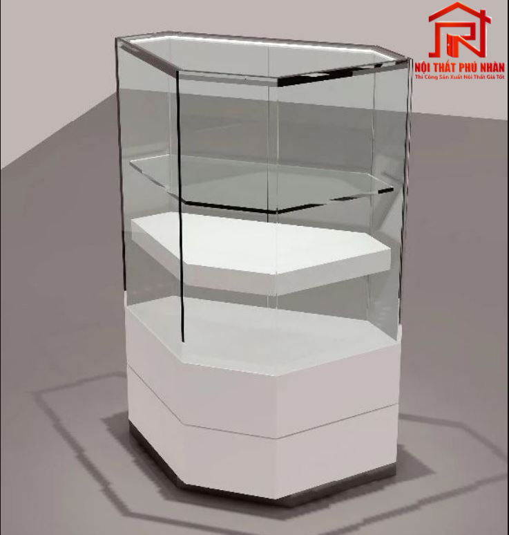 - Kính trưng bày: Kính cường lực dày 8–10mm, chịu lực tốt, dễ vệ sinh